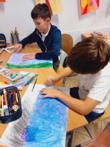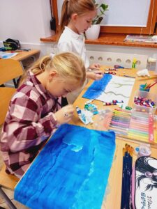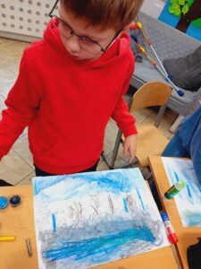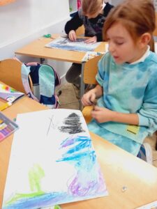 Barwy zimne, burza- koło plastyczne w klasie 2.